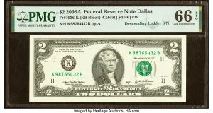 2003A $2 Federal Reserve Notes Values By Grade